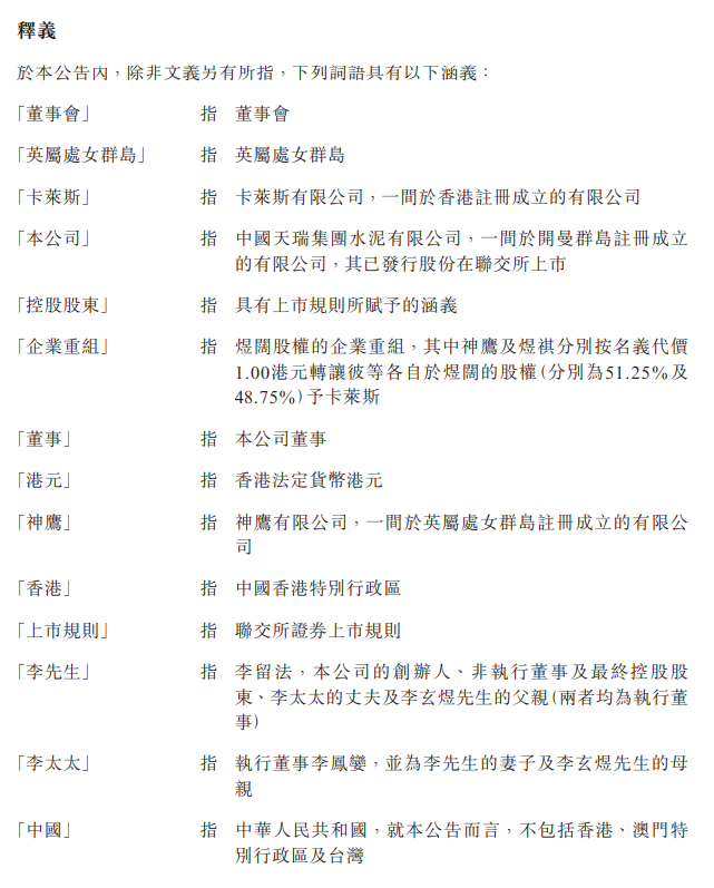 天瑞水泥完成重组!
