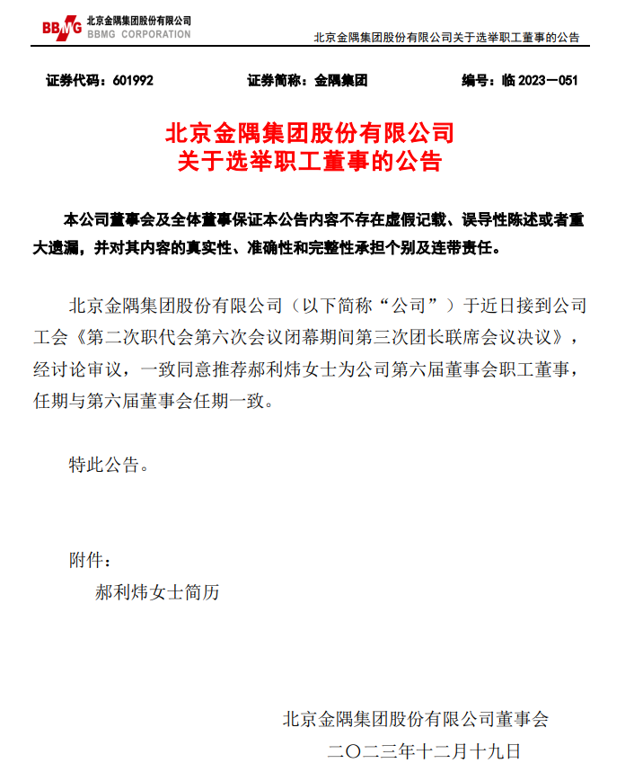 金隅集团高管变动!
