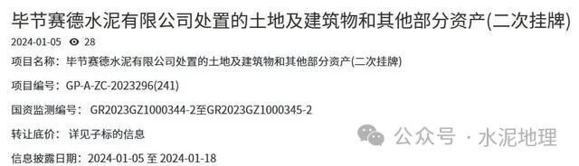 近日,相关信息显示,毕节赛德水泥有限公司转让土地及建筑物和其他部分资产,转让底价为748.67万元。