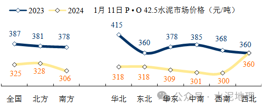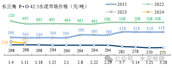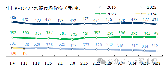2024年,全国水泥价位有其特点:2018年以后价位都在400元/吨以上,2018年以前在350元/吨以下,2024年价位回到2018年前。