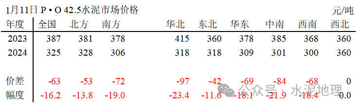 全国,325元/吨),南方 306元/吨(未含西藏),北方 328元/吨。