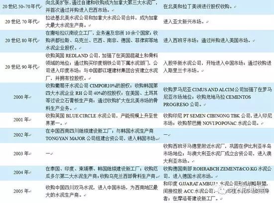 表3:国际水泥巨头拉法基和豪瑞全球化发展路径